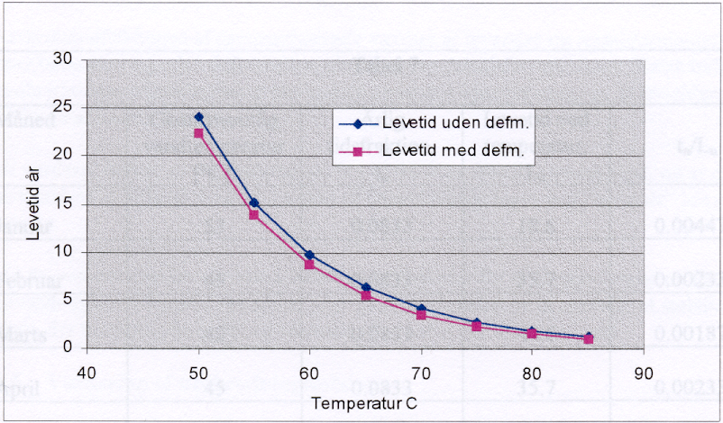 Levetid ved temperatur Ln |