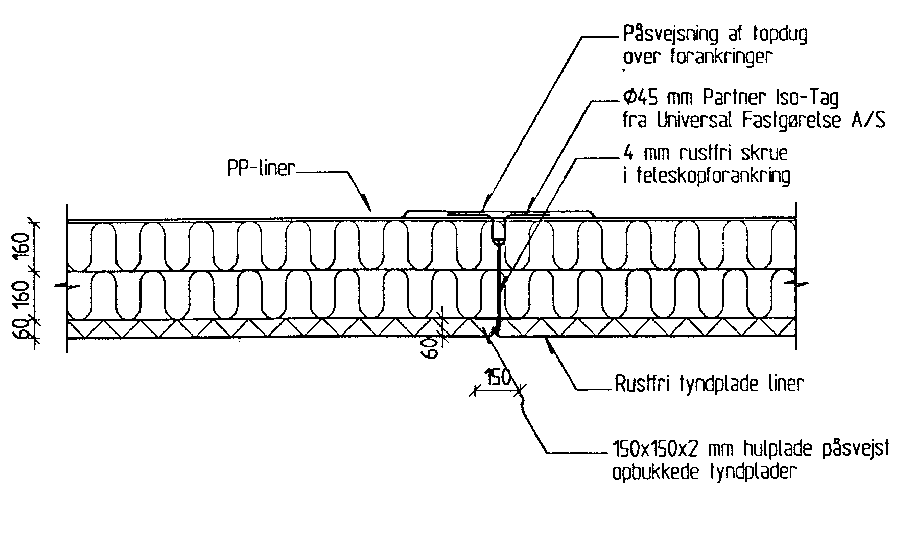 Fig. 3 Udformning af lågløsning i stål. Princip for fastgørelse af topdug (ref. 5).