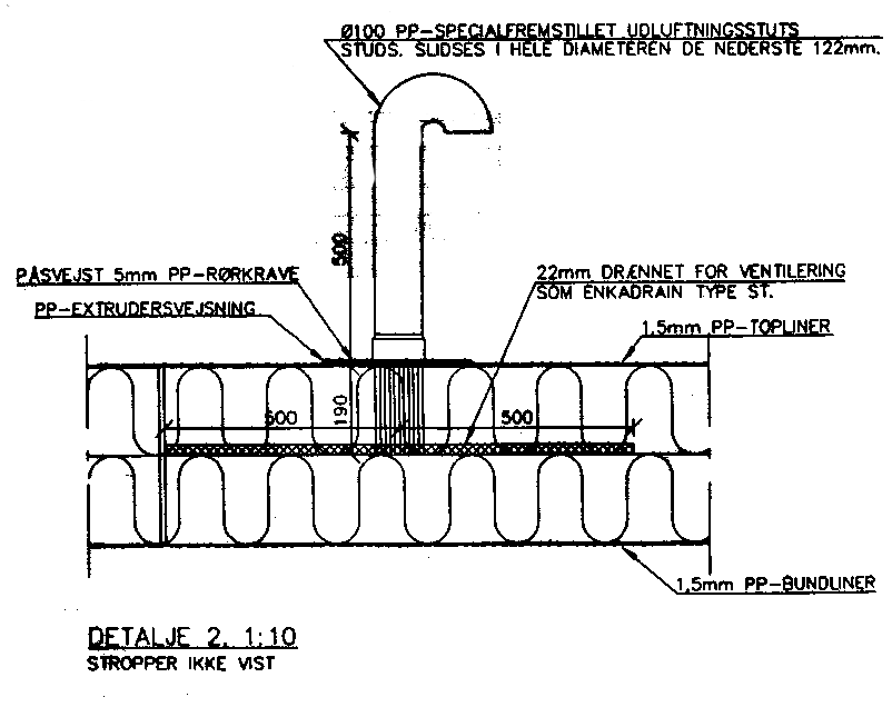 Plastløsningens moduler skal udluftes, da der trænger vanddamp gennem plastlingerne. Udluftningssystemet er vist på fig. 6.