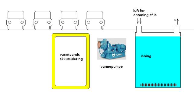Nedgravet varmepumpeopstilling feks. under en parkeringsplads ved den bydel som skal forsynes af decentral varmepumpeopstilling med (Co2 fri) overskudsstrøm se.