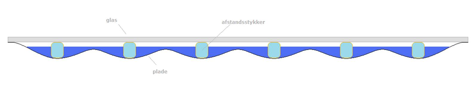 En saltvandsbestandig og varmeledende plade suges op mod glasset via vakuum. Afstandsstykker holder pladen på afstand og dampe fra kogning har herefter uhindret adgang til manifold eller dampafgang.