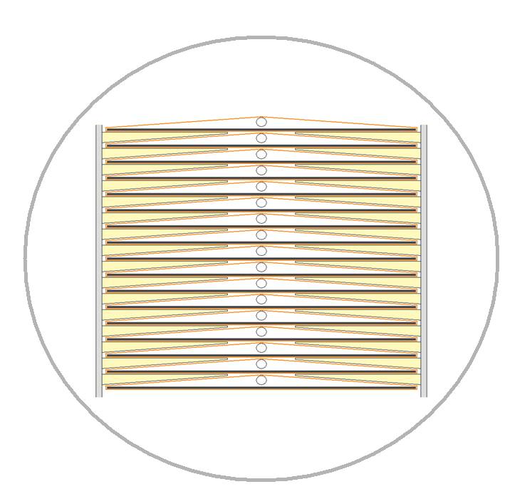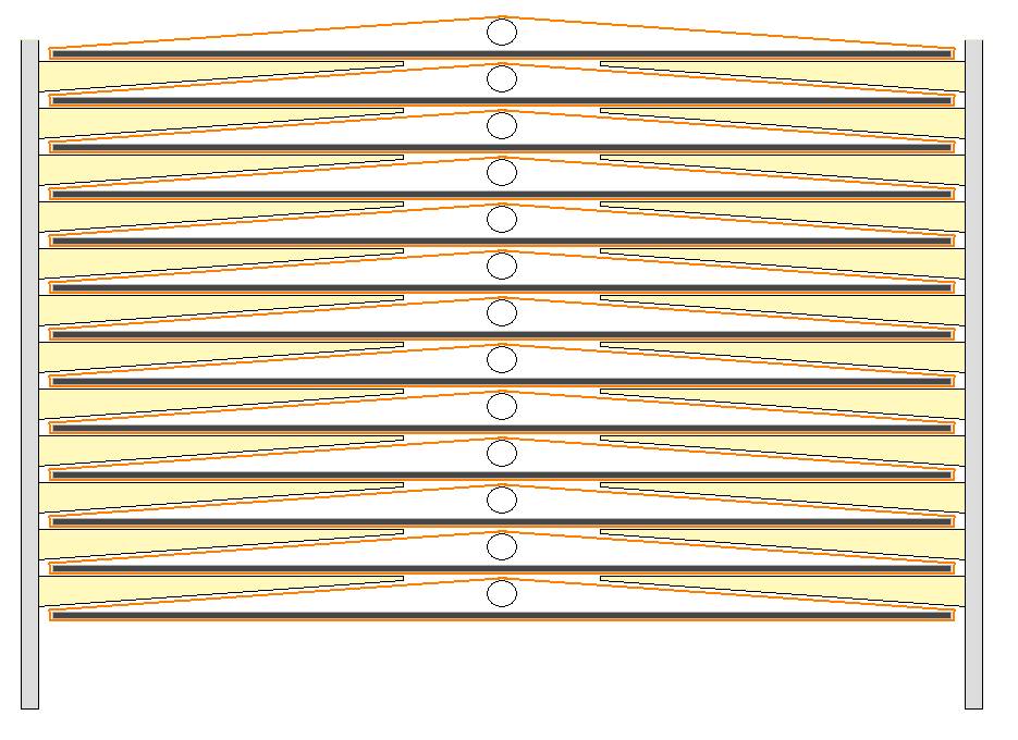 Her opbygget hvor hver veksler lægges på en ”finger” eller ”hylde” som feks. er for hver 1 m så nettet holdes vandret se.