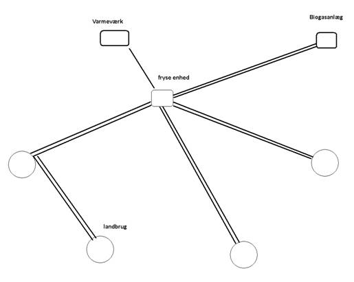Landbrug i oplandet til det store landbrug hvor biogasanlægget er placeret forbindes nu med en rørføring til afgasset gylle og en til gylle som skal afgasses. Gylle kan nu cirkuleres mellem gyllebeholdere og fryses og returneres sol slosh ice til landbrugs gyllebeholdere. Energi fra frysningen overføres nu til varmeværket for fjernvarmeproduktion. se